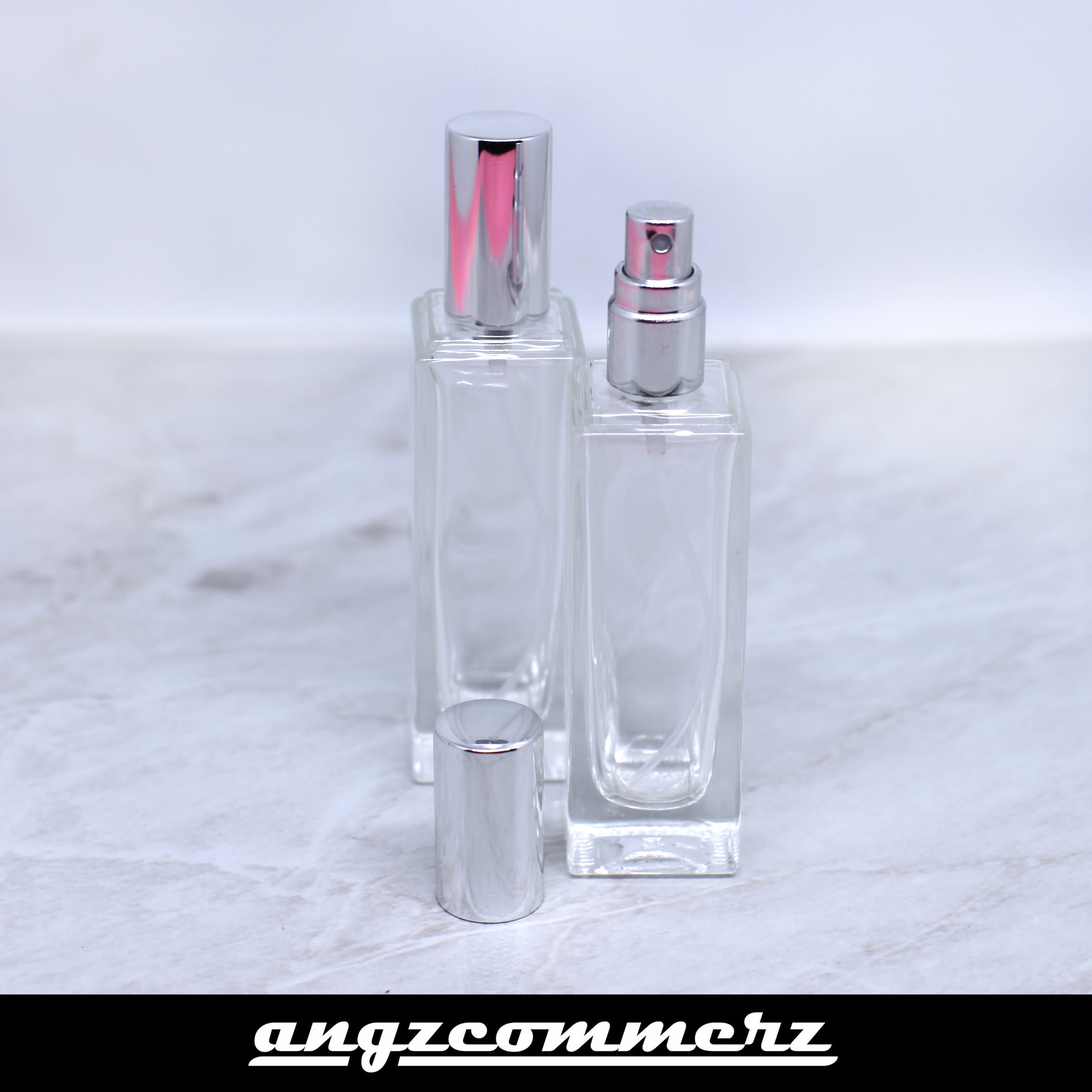 ANGZCOMMERZ Clear Square Glass Bottle Spray Silver Cover 30 ml
