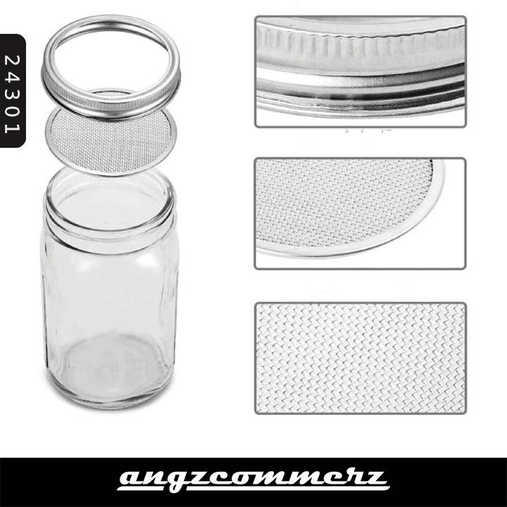 Tutup stainless steel (SS) ini dirancang khusus untuk mendukung proses germinasi atau sprouting, yaitu menumbuhkan kecambah dari biji-bijian seperti kacang hijau, alfalfa, chia, atau biji-bijian lainnya. Dengan diameter 86 mm, tutup ini kompatibel dengan Mason Jar berleher lebar (wide mouth jars).