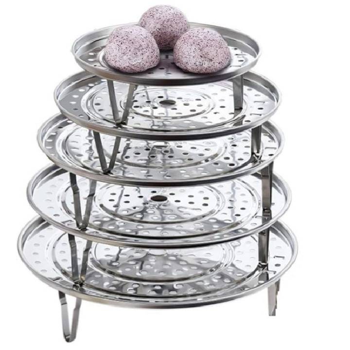 Stabilitas Tanpa Kompromi Kekuatannya tidak hanya pada badan tatakan, tetapi juga pada kaki-kaki penyangganya yang dirancang secara proporsional. Kaki ini kokoh, seimbang, dan mengangkat tatakan dengan mantap dari dasar panci, memastikan aliran uap dari bawah tidak terhambat dan makanan Anda aman dari terendam air.